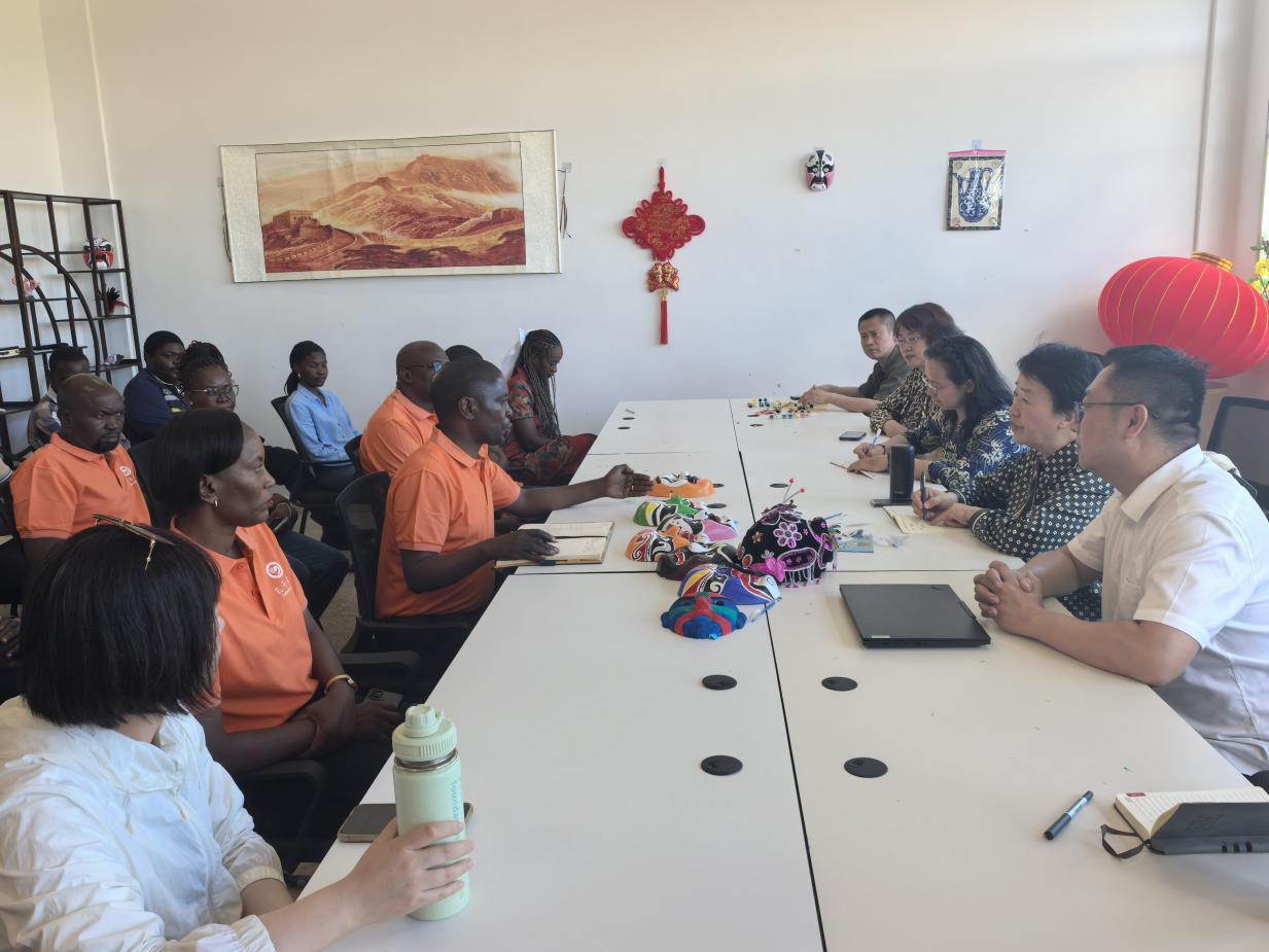 為了加強同行交流,學習經驗,推進課堂建設,訪問團還赴贊比亞大學孔子學院調研交流,樊國平院長接待了訪問團并詳細介紹了贊大孔院情況,雙方就中贊教育合作,校企合作,“中文+職業技能”教學等方面進行了交流。