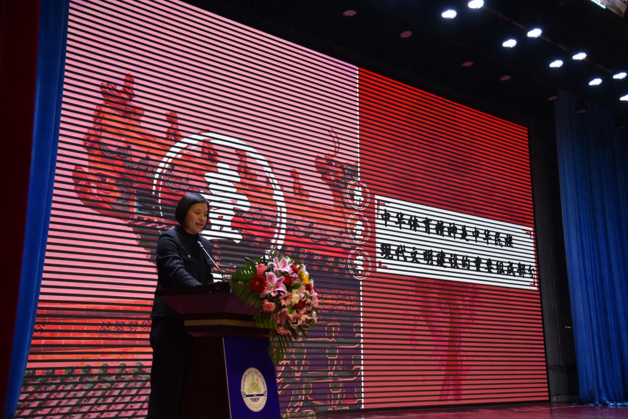 中國大學生體育協會職業教育學校體育工作委員會主席、北京工業職業技術學院黨委副書記、院長安江英致辭