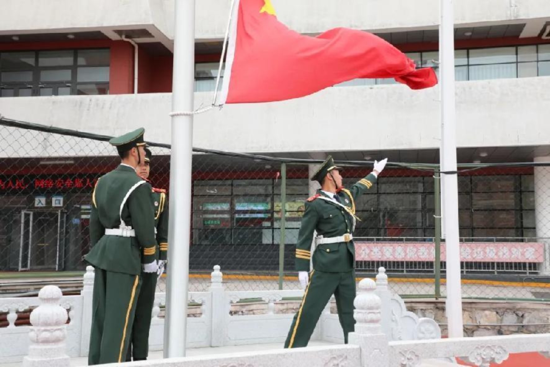結營儀式在莊嚴的升國旗、奏唱國歌中拉開序幕。伴隨著雄壯的國歌,五星紅旗冉冉升起,全體人員肅立行注目禮,愛國情懷與青春熱血在朝陽下交融激蕩,為整場結營儀式奠定莊重昂揚的基調。