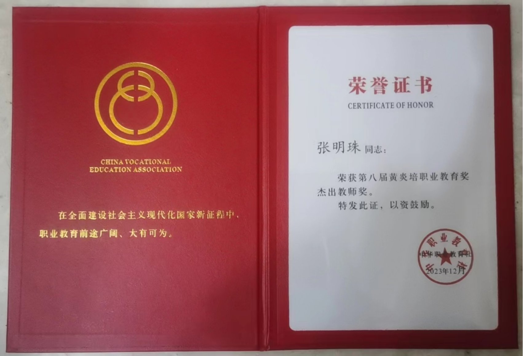 1月15日,在中華職教社組織的第八屆黃炎培職業教育獎表彰大會上,我校機電工程學院教師張明珠榮獲“第八屆黃炎培職業教育杰出教師獎”。
