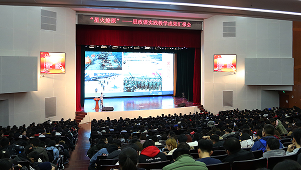 12月14日,我校2021年思政課實踐教學成果匯報會在學校禮堂隆重舉行。校黨委書記高喜軍、黨委副書記魏曉東、副校長周燕、副校長劉蘭明、副校長王希忠、紀委書記張萌萌、校長助理謝光輝,馬克思主義學院、黨委宣傳部、黨委教師工作部(人事處)、教務處、教學質量監控中心、學生工作處等相關部門負責人,各學院院長、黨總支書記和副書記出席會議,馬克思主義學院全體教師和各學院學生代表參加匯報會。