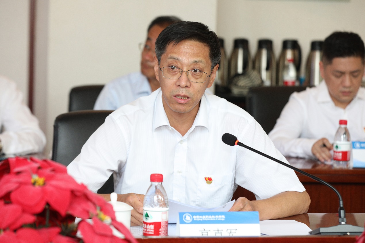 高書記指出,學校以“三全”為抓手,促進黨史學習教育入腦入心。一是堅持“全過程”領導,學習教育有力度。建立“學校黨委領導統籌、責任部門協調配合、黨團組織扎實落實”的黨史學習教育工作機制,層層壓緊壓實責任。二是堅持“全員”參與,學習教育有廣度。以上率下,“學”起來。黨委理論學習中心組率先垂范,發揮引領作用,處級領導干部、黨員師生,青年學生群體分層分類推進,全覆蓋加強學習;突出重點,“講”起來。黨委領導班子成員帶頭深入基層講專題黨課,黨組織書記和部門正職講專題黨課總計63場次,專題黨課和黨史宣講有機結合;觸及心靈,“動”起來。通過談感受、說體會,以潛移默化的方式觸動每個黨員干部、師生員工的心靈,用黨史浸潤心靈,引導其深入思考、深刻感悟中國共產黨為什么能、馬克思主義為什么行、中國特色社會主義為什么好。三是堅持“全方位”推進,黨史學習有深度。將黨史學習教育課堂搬進歷史地標,組織黨師生前往中國人民抗日戰爭紀念館、長辛店二七紀念館等革命舊址參觀學習,現場體悟革命傳統和革命精神。“誦讀紅色經典 致敬百年偉業——紀念中國共產黨成立100周年紅色經典師生誦讀”、 “永遠跟黨走”黨史知識競賽、“唱支山歌給黨聽”快閃活動、 “穿越時空-寫給革命先烈的一封信”等沉浸式實踐,將紅色基因深入骨髓、浸入靈魂。開展“兩優一先”評選,選樹黨員先鋒榜樣,官網、官微和公眾號聯合推出黨史學習專題欄目,強化立體化宣傳,推動黨史學習教育入腦入心。