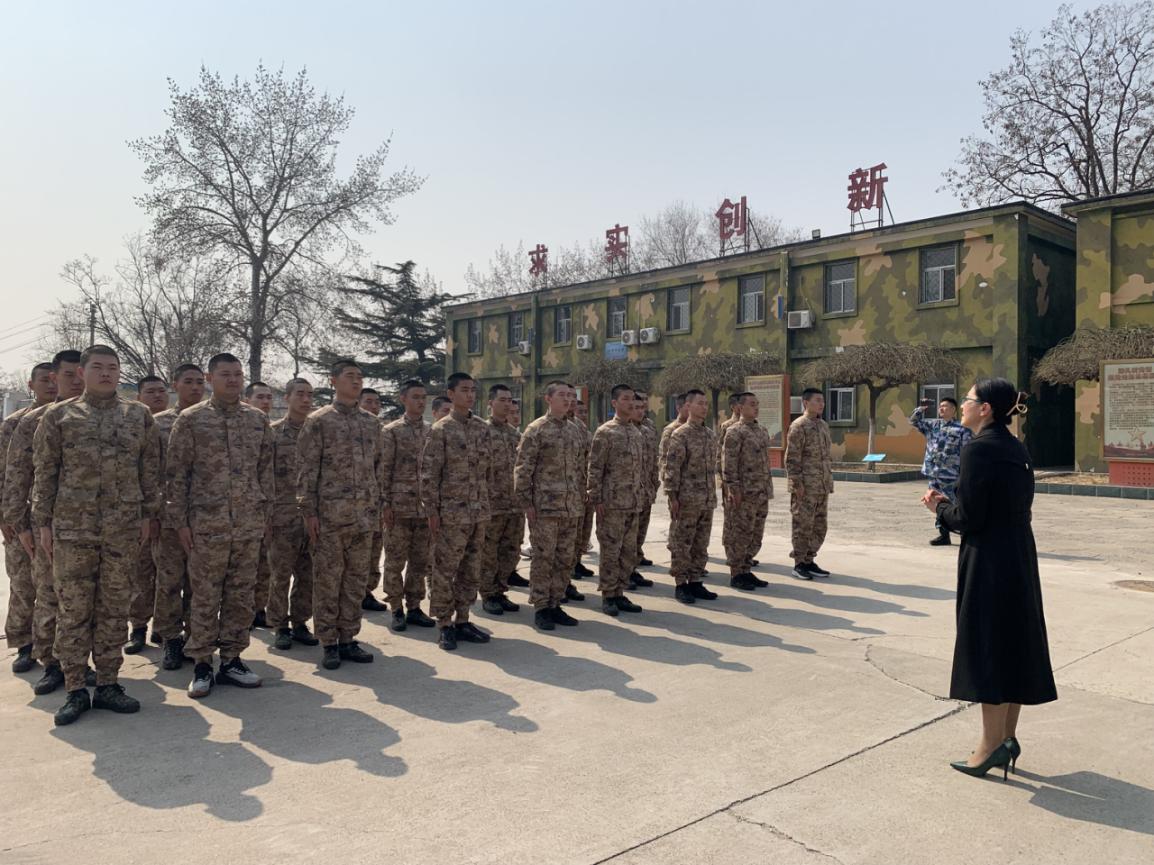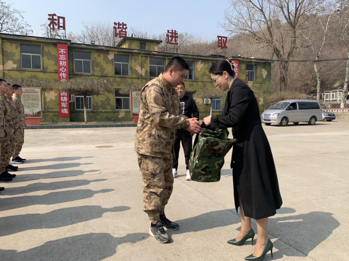 會議結束后,副院長沈瑩、學校武裝部梁文學、袁威到新兵集訓基地為新兵頒發紀念品,為新兵出征壯行。