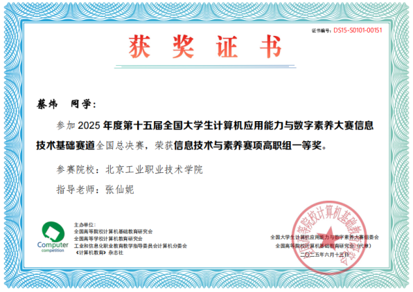 經過兩天的緊張比拼,我校學子憑借扎實的專業功底與出色的臨場發揮,在賽場上大放異彩。賈夢澤、蔡煒兩位同學摘得個人一等獎;宗浩宇、申恪等14名同學獲個人二等獎;宋伊諾、唱煥林等14名同學獲個人三等獎。同時,我校團隊以優異成績斬獲信息技術與素養賽項高職組團體一等獎、人工智能應用基礎賽項高職組團體二等獎,以及WPS AI智能辦公、Microsoft Office智能辦公賽項高職組團體三等獎,充分展現了我校學子良好的精神風貌與過硬的綜合實力。