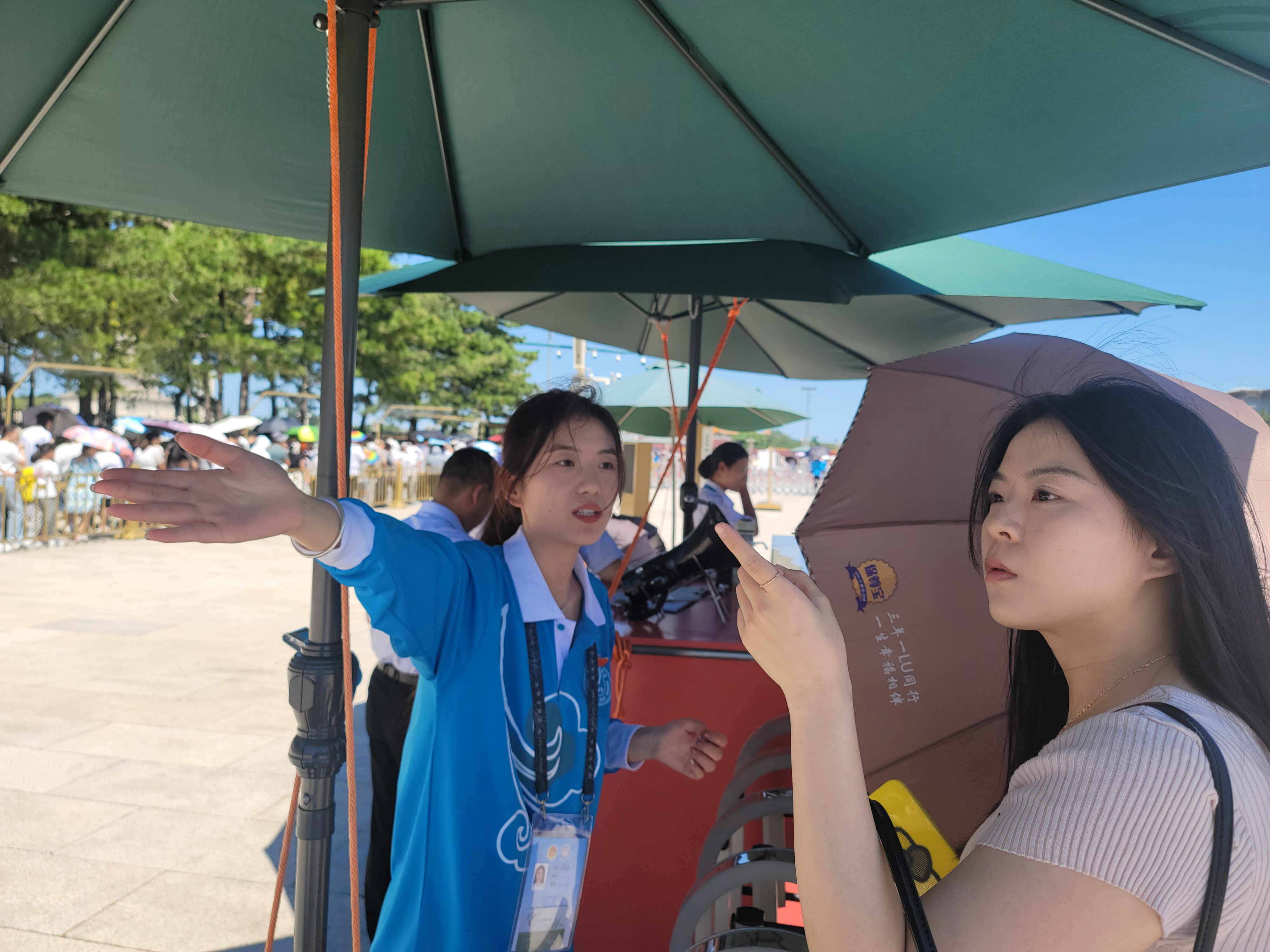 隨著大暑臨近,北京連日高溫,戶外開啟“炙烤模式”,烈日下的天安門廣場(chǎng)地表溫度持續(xù)升高,志愿者們緊張而有序地在團(tuán)隊(duì)預(yù)約崗提供預(yù)約幫助,耐心負(fù)責(zé),答疑解惑,在扶老助殘崗幫助群眾上下樓梯,在外圍崗指引群眾,不畏酷暑,堅(jiān)守崗位,引導(dǎo)大家有序瞻。