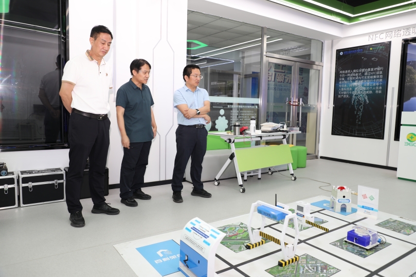 座談結束后,杜建峰處長一行依次參觀考察了學校國際化辦學、訊飛AI工坊、360城市安全產業學院、工程測量實訓基地、中法能效應用人才培養和研究中心、汽車實訓基地、智能網聯實訓室、BIM工程中心、智能建造工程中心等實習實訓基地。