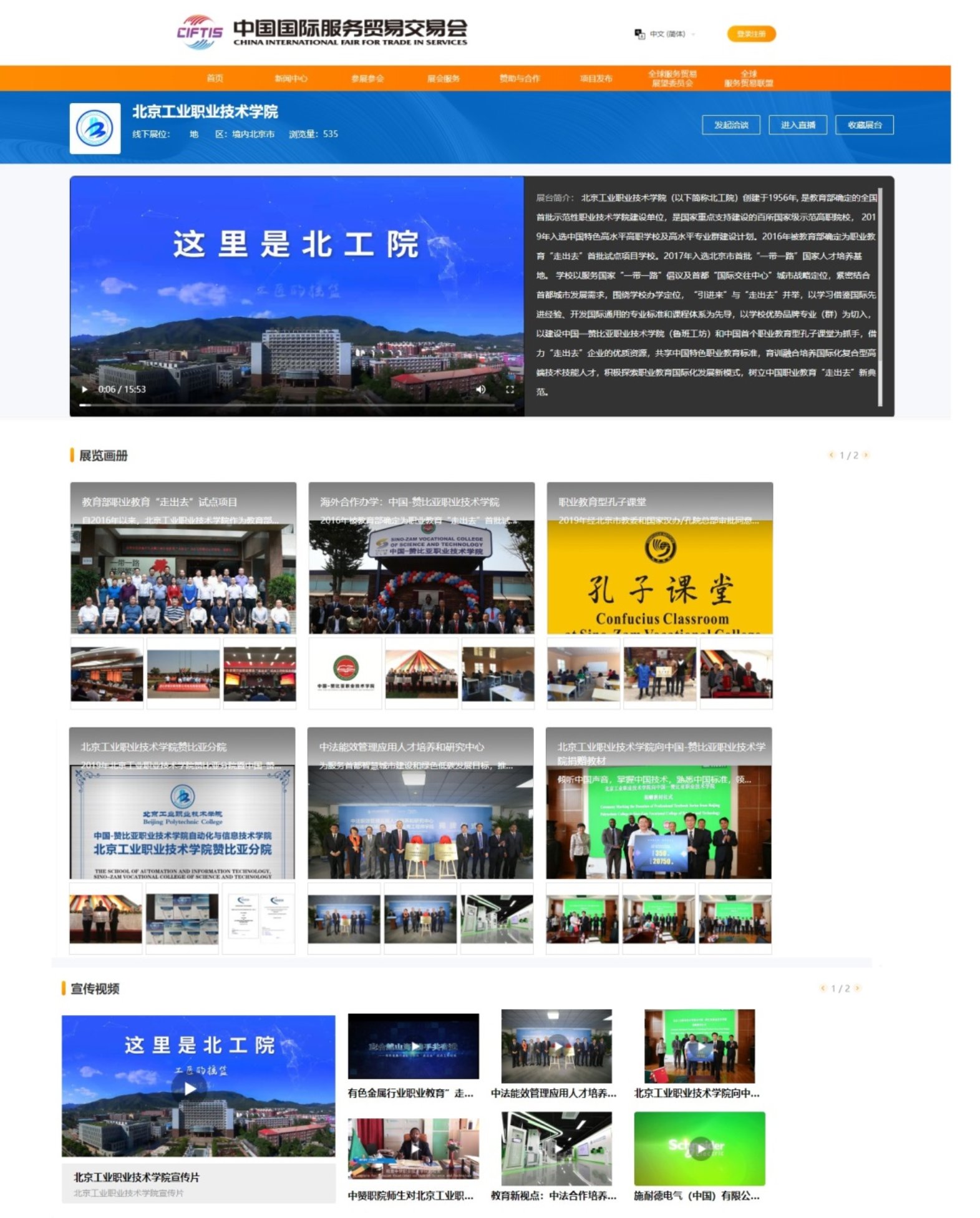 本次服貿會依然采取線上線下融合的方式舉辦。當前線上展廳已經開始運行,在線下展廳,我校就中贊職業技術學院、孔子課堂,施耐德電氣城市能效管理應用工程師學院、“中文+職業技能”教育實踐與研究基地等辦學成果進行現場展示。展示北京市職業教育改革發展的最新成果,宣傳推介我校在教育服務貿易領域的發展特色、創新舉措,為教育國際服務貿易發展提供方案和借鑒。