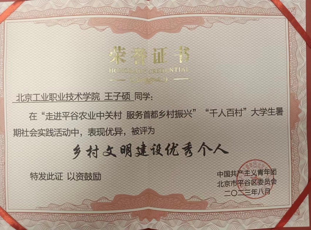 近日,2023年“走進平谷農業中關村 服務首都鄉村振興”“千人百村”大學生暑期社會實踐評獎結果公布。我校在社會實踐活動中組織得力,成效顯著,被評為優秀組織獎;機電工程學院實踐隊王子碩同學表現優異,被評為“鄉村文明建設優秀個人”。