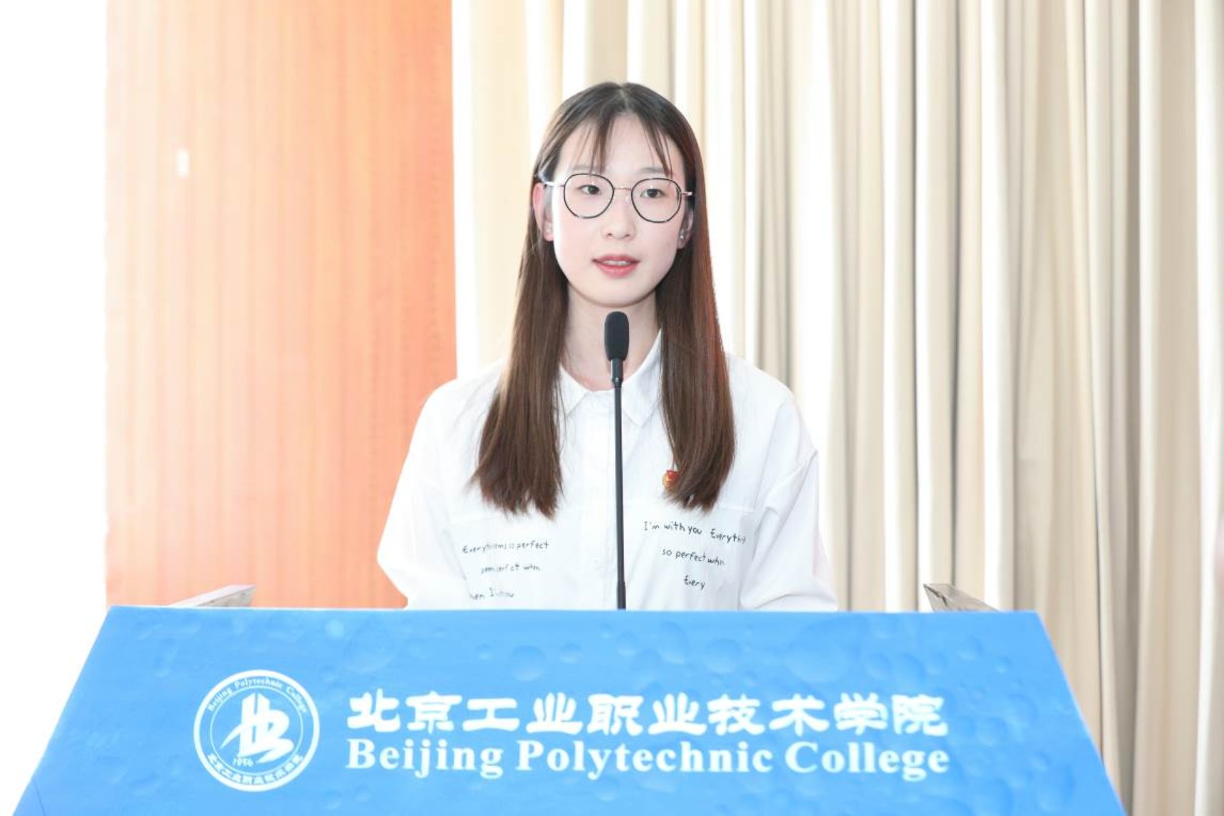 隨后,新團員代表人工智能2231班薛曉婷同學發言。她代表所有新團員承諾,在之后的學習生活中將認真履行自己的入團誓言,把錚錚誓言化做終身的信念,化做刻苦學習的毅力和恒心,化做創新實踐的活動,努力學習,敏于求知,不斷提高自己的素質。