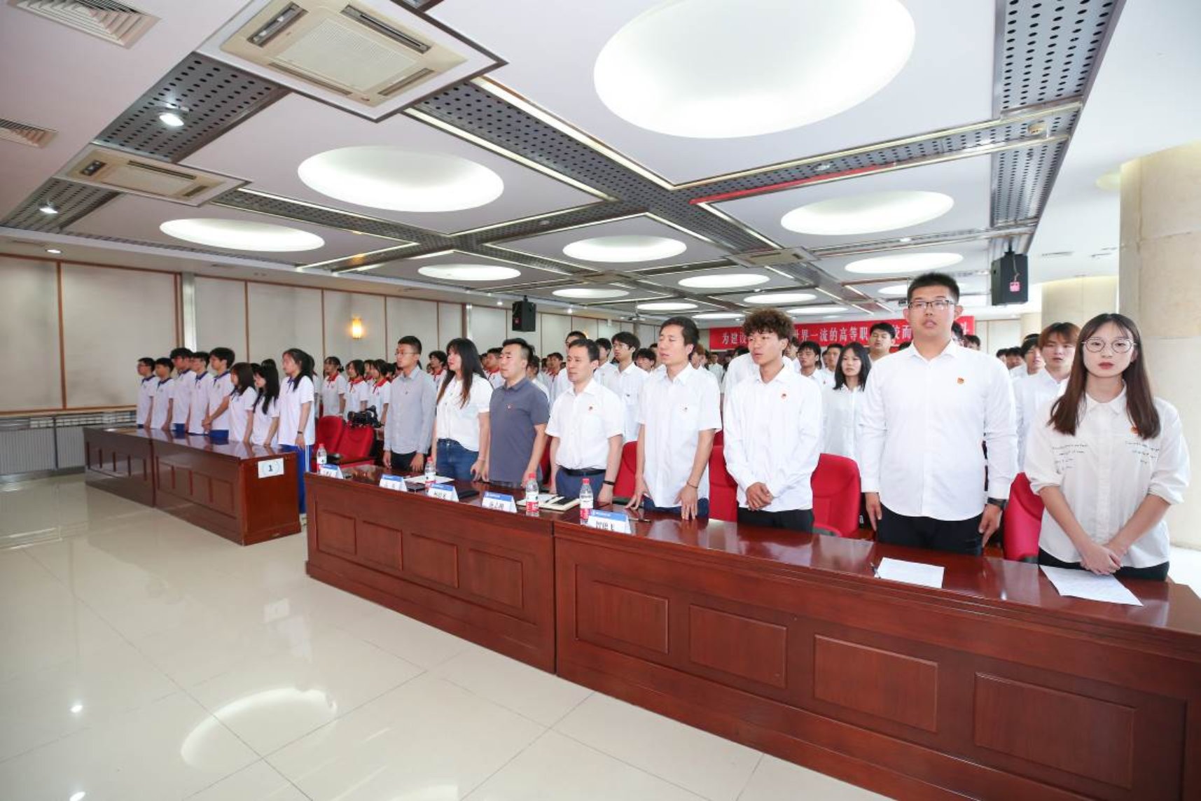 最后,全體起立奏唱團歌,入團宣誓大會在嘹亮的團歌聲中落下帷幕。