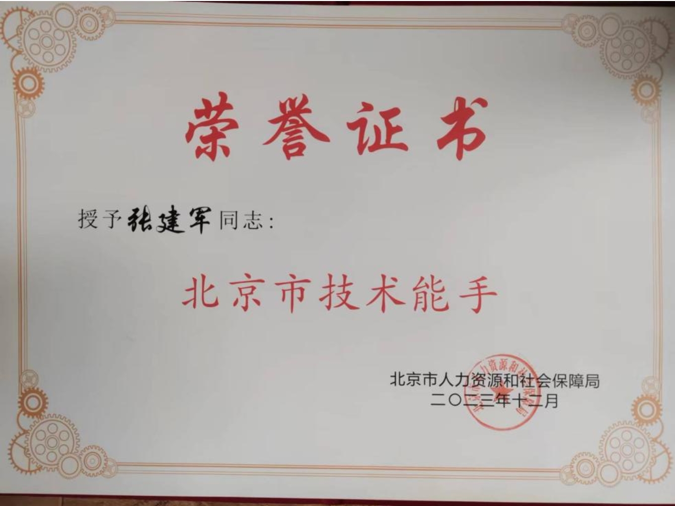 近日,北京市人力資源和社會保障局公布了“北京市技術能手”獲得者名單,我校張建軍老師被授予“北京市技術能手”稱號。