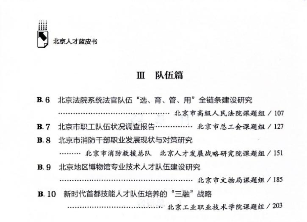 《北京人才發展報告》全面總結北京人才研究領域的優秀思想和實踐經驗,展示人才工作的最新成果和趨勢,是全市人才工作者的必備工具書,已連續12年發布。我校入選研究成果《新時代首都高技能人才隊伍培養的“三融”戰略》圍繞北京城市發展格局和首都功能定位,結合現代產業體系建設需要,分析新時代首都高質量發展對技能人才需求的轉變,針對首都技能人才隊伍建設存在的問題,針對性從產教融合、城教融通、科教融匯三個維度提出技能人才培養的“三融”戰略,為北京加快建設世界重要人才中心和創新高地提供思考建議。