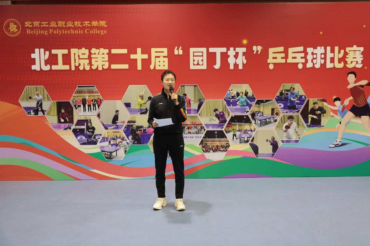 開幕式上,丁寧對北京工業職業技術學院全體師生員工送祝福,希望大家認真工作、努力學習,希望比賽隊員都能夠收獲獎杯,收獲榮譽。比賽正式開始前,錢偉和丁寧為第二十屆“園丁杯”乒乓球比賽開球,獲得滿堂喝彩!