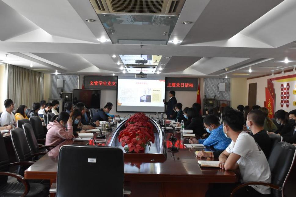 文管學(xué)生黨支部于5月11日中午,在匠心樓十層黨員之家召開(kāi)“飲水思源知史愛(ài)黨”——講述家鄉(xiāng)的黨史故事主題黨日活動(dòng)。校黨委書(shū)記高喜軍,文法與管理學(xué)院黨總支書(shū)記楊嶺、院長(zhǎng)許保國(guó)及學(xué)生黨支部全體黨員、預(yù)備黨員、部分積極分子參加此次主題黨日活動(dòng),主題黨日活動(dòng)由支部書(shū)記施志剛主持。