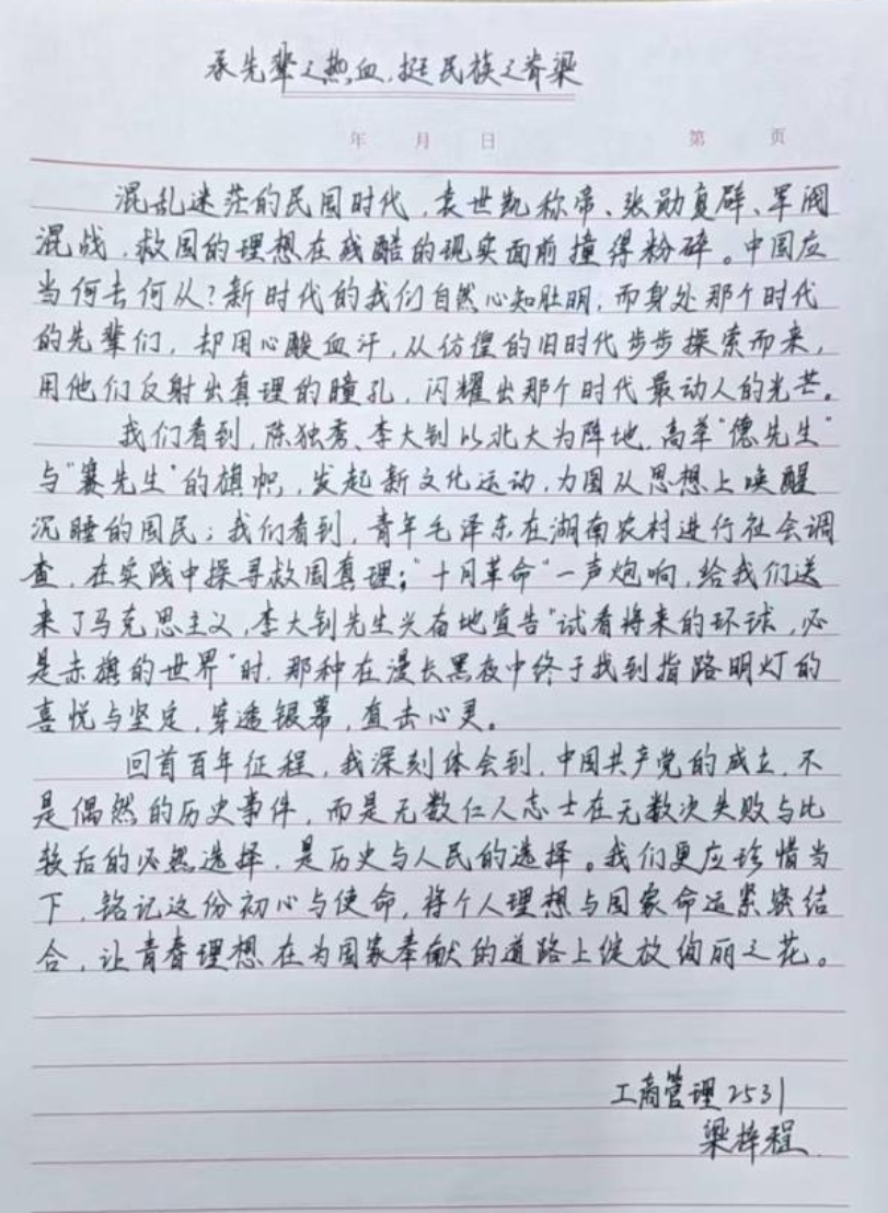 建筑與測繪工程學院“青春寄語新時代”留言活動中,同學們執(zhí)筆寫下赤子之心,讓留言墻成為凝聚報國之志的生動載體;文法與管理學院在觀影后組織觀后感書寫,推動愛國主義精神內(nèi)化于心、外化于行。