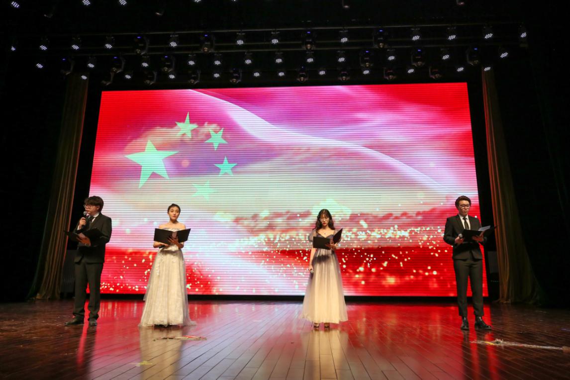 情景劇《戰火中的大學生》重現了戰火紛飛的年代中,團員青年們激昂的斗志,贏得了現場觀眾的陣陣掌聲。朗誦《青春中國》、《青年》展現了當代青年心系祖國富強、胸懷民族復興的新時代風貌及奮斗精神。校“夢之聲”合唱團帶來了《天耀中華》和《唱支山歌給黨聽》,為偉大的祖國、偉大的中國共產黨唱出北工院學子心中最美的歌。文藝匯演的最后,全場師生揮舞手中的旗幟,一起唱響《沒有共產黨就沒有新中國》,用嘹亮的歌聲抒發對黨的熱愛,用真摯的情感表達永遠跟黨走的決心。