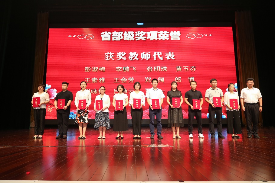 校領(lǐng)導(dǎo)為獲獎(jiǎng)集體及教師代表頒獎(jiǎng)