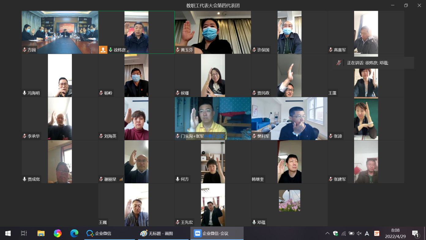 因為疫情防控需要,此次大會設置5個分會場,采取線上線下相結合的方式召開。代表們書面審議安江英校長作的《學校工作報告》,副校長、工會主席王希忠作的《工會工作報告》和教代會提案審查工作委員會主任鄭興作的《提案工作報告》。