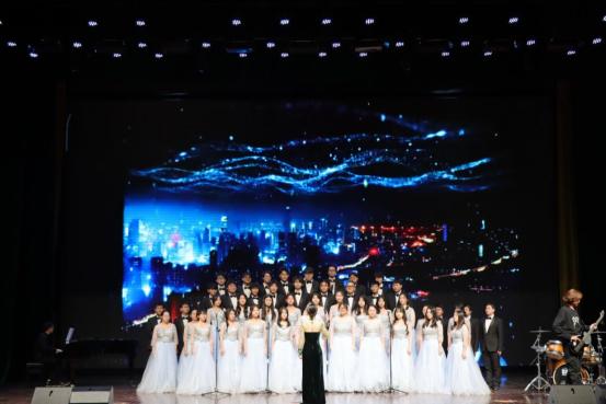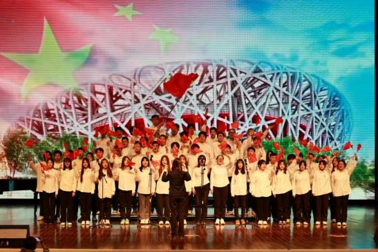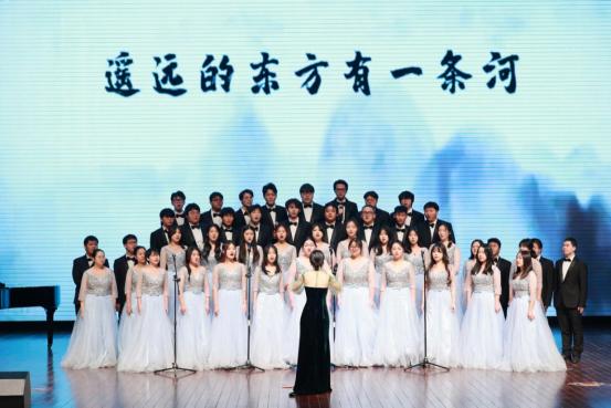 校“夢”之聲合唱團演唱歌曲《燈火里的中國》、《龍的傳人》