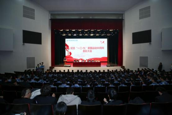 為紀念“一二·九”愛國運動88周年,引導學校廣大青年進一步了解歷史、銘記歷史,繼承和發揚革命先烈的光榮傳統,弘揚愛黨愛國精神,我校于12月7日晚在校禮堂舉辦紀念“一二·九”愛國運動88周年表彰大會暨“青年領航傳薪火 強歌不輟譜新篇”合唱比賽。學校黨委常委、副院長沈瑩,學校黨委常委、副院長史運濤,各職能部門和二級學院相關負責人、班主任、輔導員、學生代表等一千余名師生參加表彰大會并現場觀看合唱比賽。