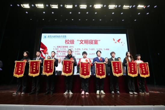 校黨委常委、副院長史運濤宣讀2022-2023學年校級“文明寢室”、校級“三好學生”、“優秀學生干部”、校級“先進班集體”、2023年青年服務國家首都大學生暑期社會實踐優秀團隊、2023年北京“千人百村”大學生暑期社會實踐優秀組織獎、鄉村文明建設優秀個人表彰決定。與會領導為獲得榮譽的集體和個人頒發證書。