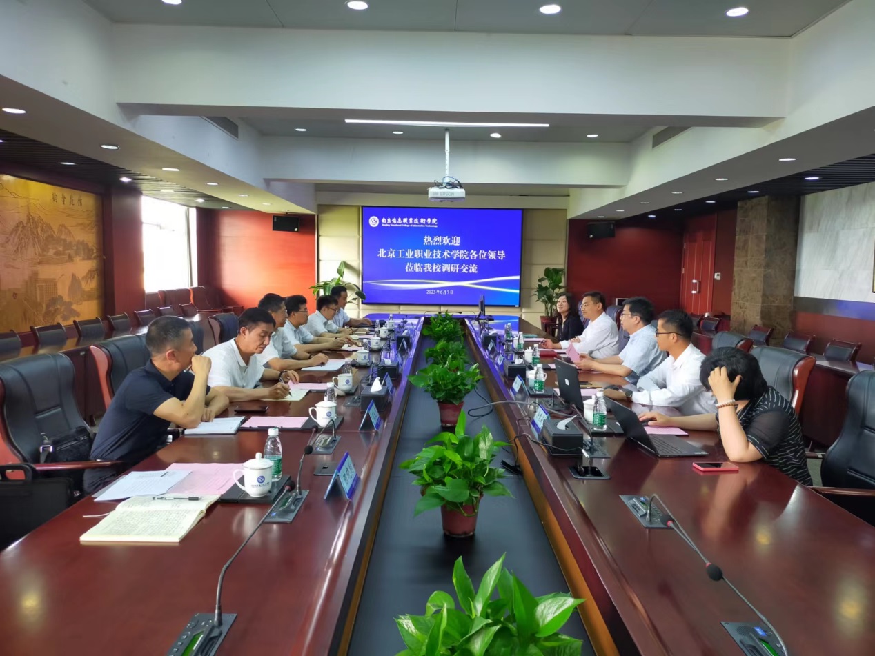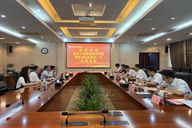 6月7日上午,黨委書記高喜軍帶隊赴南京工業職業技術大學考察調研。該校黨委書記吳學敏,黨委常委、紀委書記、省監委派駐監察專員邱正祥以及相關部門負責同志在仙林校區熱情接待,吳學敏首先對來賓的到來表示熱烈歡迎,并介紹了該校職教本科的辦學情況。高喜軍介紹了我校的基本情況。