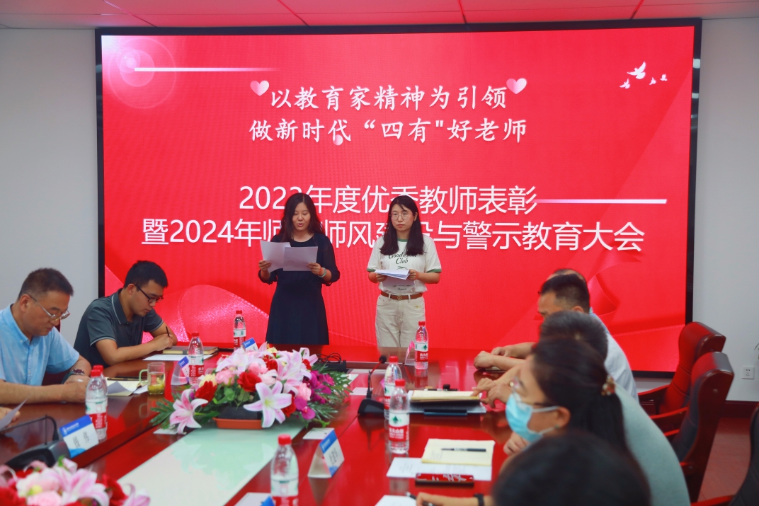 6月14日,基礎教育學院舉行《以教育家精神為引領 做新時代“四有”好老師——2023年度優秀教師表彰暨2024年師德師風建設與警示教育大會》。校黨委常委、紀委書記錢偉,黨委教師工作部部長、人事處處長任鳳國,教務處副處長張普慶出席會議,基礎教育學院全體干部教師參加本次會議。