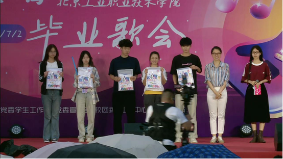 校黨委常委、副院長沈瑩抽取現場5名幸運觀眾,為大家頒發北工院“落日畢業歌會”周邊,并送上溫情畢業祝福。