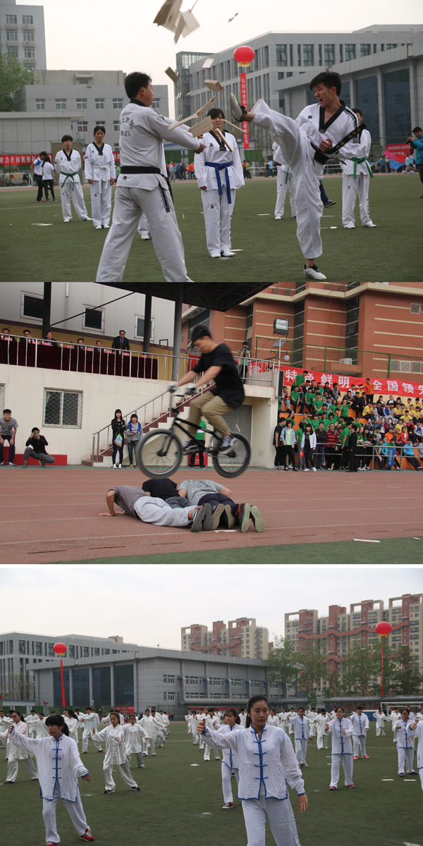 跆拳道、毽繩、小輪車、太極拳表演結束后,隨著發令員的一聲槍響,歷時一天半的第38屆田徑運動會比賽正式拉開序幕。