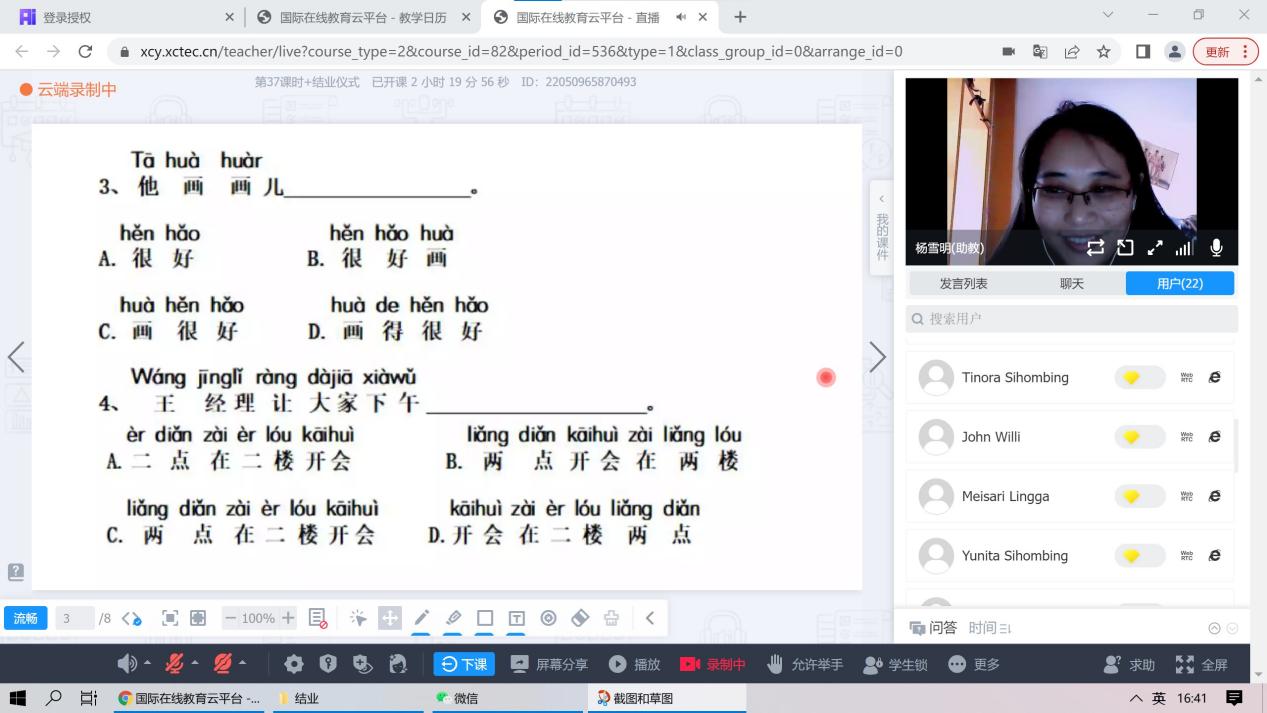 達瑞礦業有限公司中文培訓班開班于2021年11月29日,為期18周。此次培訓,是中國“一帶一路”職業教育合作項目中的一部分,也是我校“中文+職業技能”教育實踐與研究基地的重要任務。培訓項目得到了中國教育部中外語言交流合作中心、北京市政府的大力支持。此次線上中文+職業技能培訓項目是一次新的嘗試,促進了中國與印尼交流和文化融合。不僅提升了受訓學員的中文水平,也增進了學員們對于中國文化的認同和了解,得到了學員們、企業領導們的一致好評。