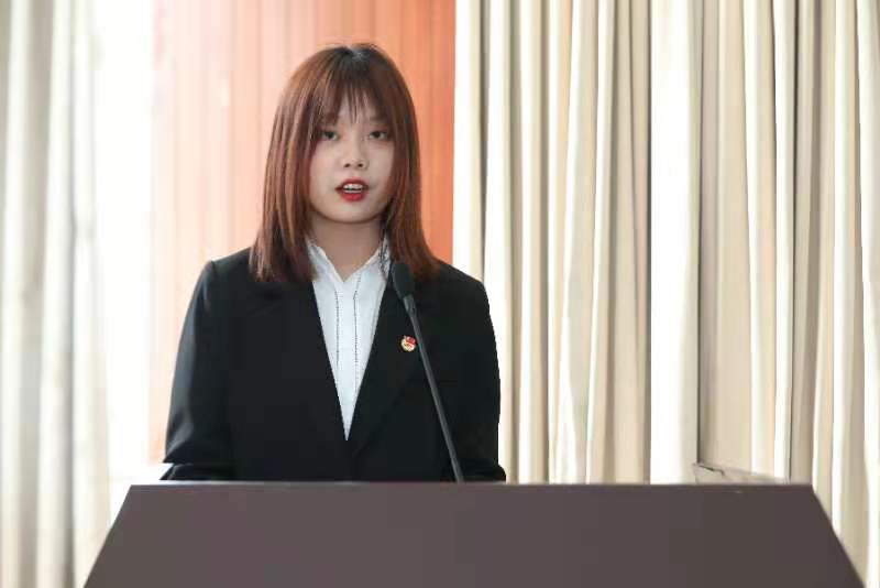 新團員代表網絡2032班楊夢涵同學上臺發(fā)言