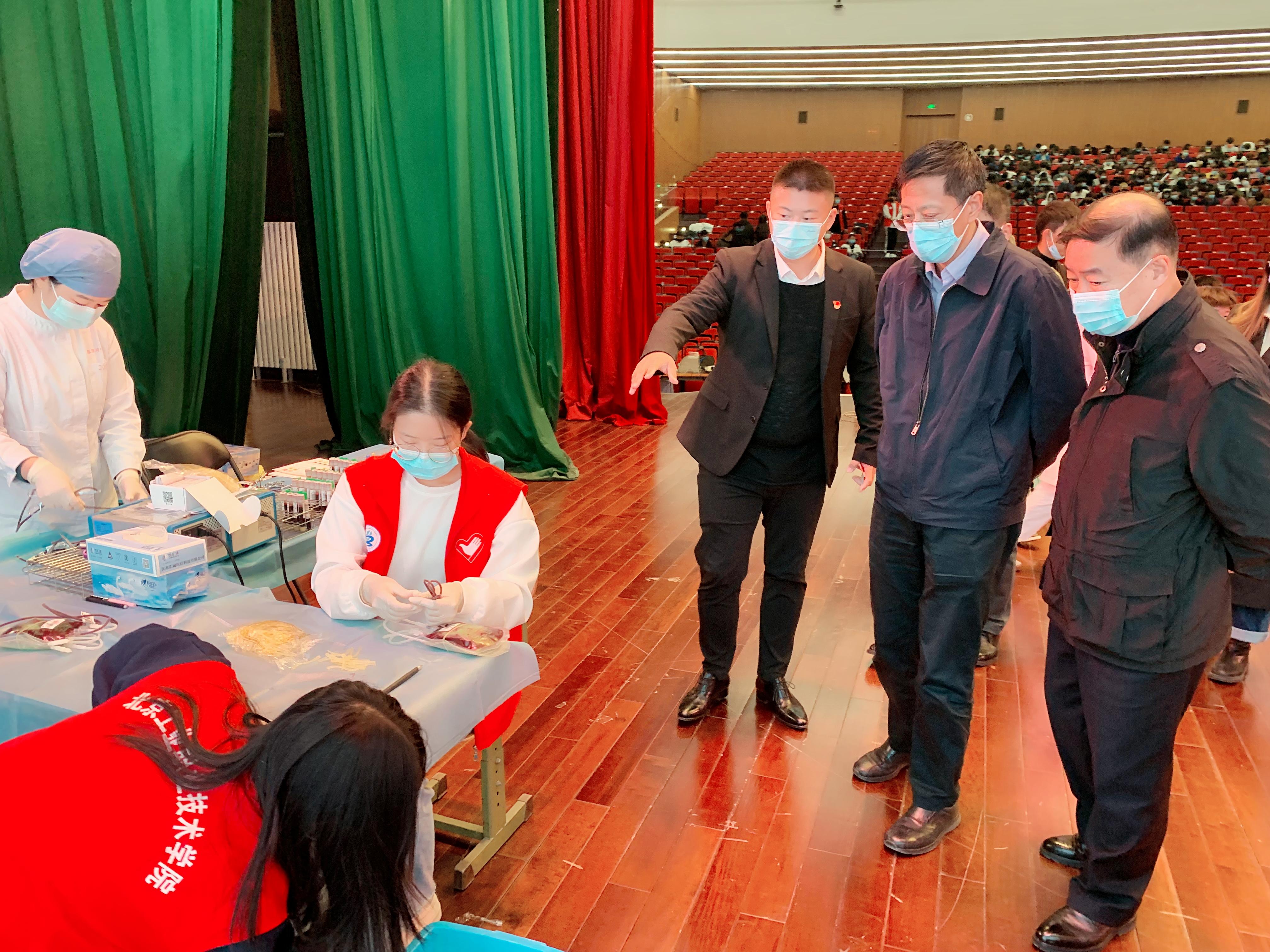 校黨委副書記魏曉東、團委書記鄭興、團委副書記趙萌看望參與愛心獻血的學生