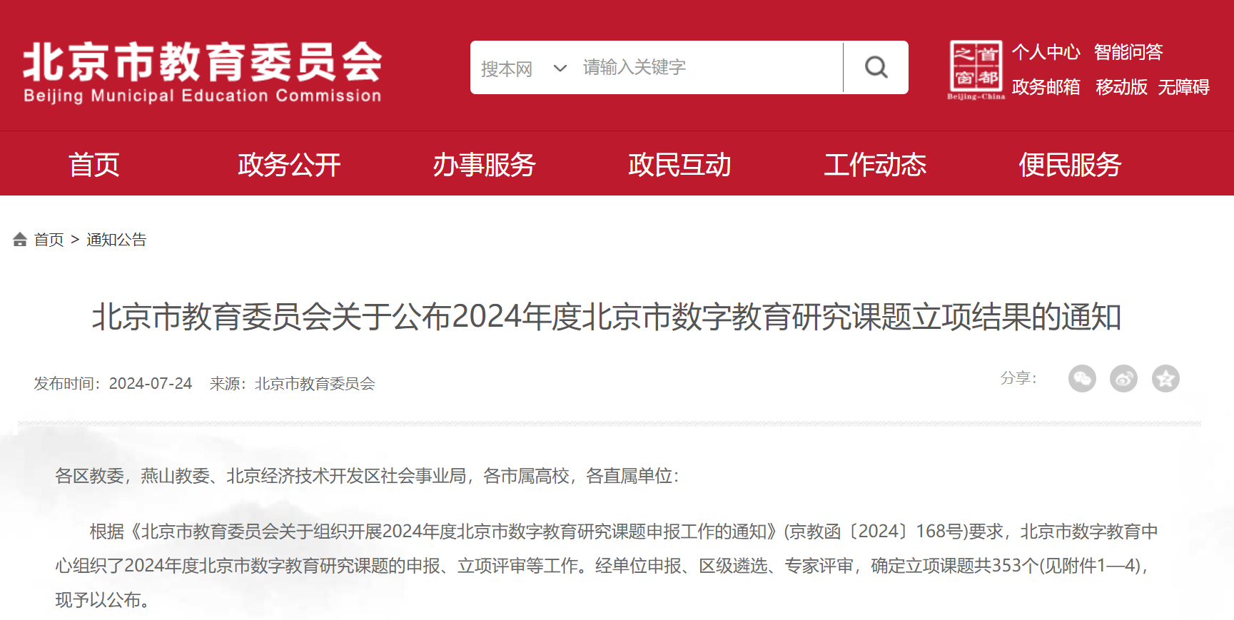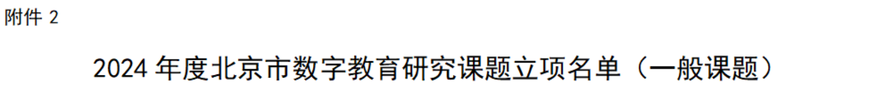 近日,北京市教委公布了2024年度北京市數字教育研究課題立項名單,我校成功獲批重點課題1項、一般課題1項、青年課題1項、專項課題1項。