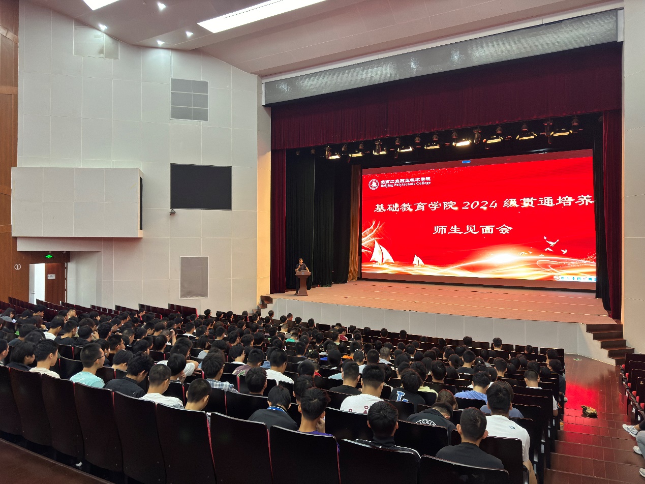 為貫徹落實立德樹人根本任務,做好新生的入學教育工作,基礎教育學院在圖書館禮堂舉行了2024級貫通培養師生見面會。學院黨總支副書記史偉上臺致辭,對新生的到來表示熱烈歡迎,同時對學院的辦學理念和學科特色進行了介紹。最后對新生提出了殷切期望,愿新生們在北工院的學習中勇往直前,超越自我,創造屬于自己的精彩人生。
