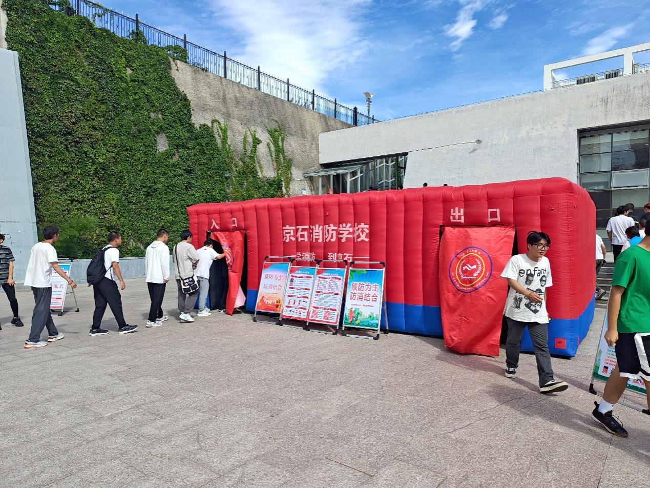 安全穩定工作處組織新生開展了消防安全應急疏散演練,演習中同學們依次進入移動消防體驗站,通過親身體驗的方式,學到了撲救初期火災的能力和火場逃生技巧,并在安穩處教師示范指導下,自動手操作滅火器,親自感受、體會滅火器的滅火功效,將理論知識轉化為實踐技能,未雨綢繆,防患于未然。