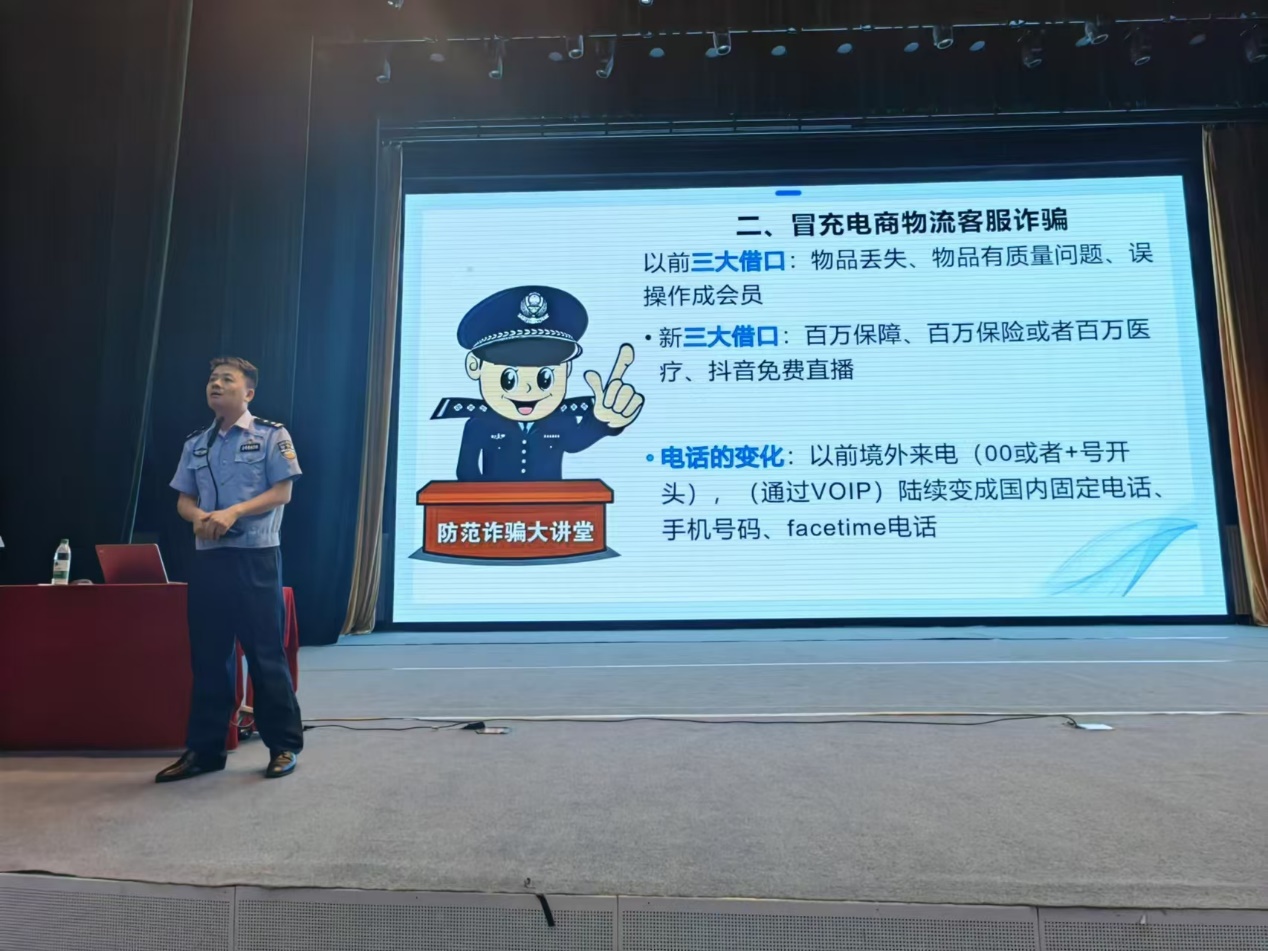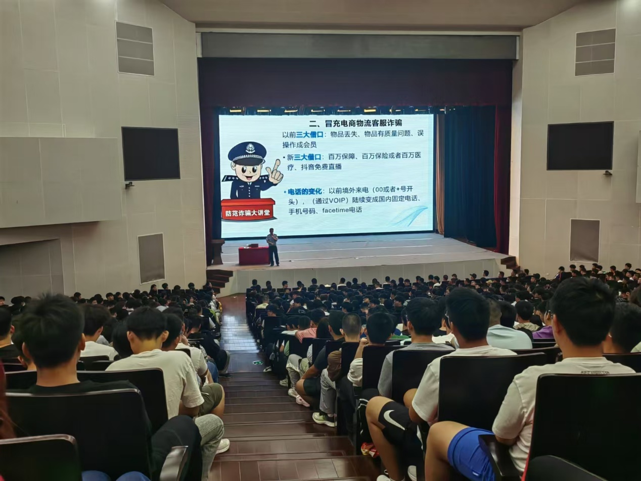 學校安全穩定工作處牽頭,特邀石景山區公安分局刑偵支隊現案中隊邢運偉隊長為新生做入學教育第一課“反詐進校園安全駐心中”專題講座。邢隊長結合大學生電詐的真實案例,分析危害后果,針對大學校園高發的裸聊、冒充公檢法詐騙、冒充網絡購物平臺詐騙等詐騙犯罪進行了詳細講解和警示教育,科普了反詐的重要意義和有效措施,切實提高廣大學生的安全防范意識和反詐防騙能力。