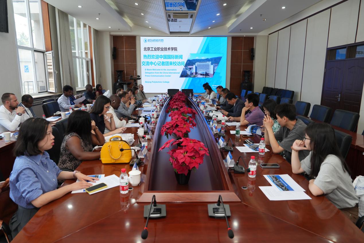 記者朋友們就中國職業教育發展概況、職業教育海外辦學、職業教育在助力制造業大國中發揮的作用、高端技術技能人才培養、學生就業去向、國際學生來校學習等感興趣的話題與我校展開了深度交流。南非記者弗朗斯·塞洛·馬查特聽說除了畢業證書之外,學生在校期間還能考取相應技術等級及資格證書,同時畢業后會到首都機場、北京地鐵、北京燃氣、航天系統等單位就業時,對學校接收國際學生的條件與標準等大感興趣,表示回國后會推薦本國學生來學校進修學習。贊比亞記者維奧萊特·納卡姆巴在聽到我校在贊比亞辦學的情況后,表示在回國后要把中國職教扎根非洲,助力贊比亞本土技術技能人才培養的故事傳遞給更多贊比亞人民知道,讓中贊友誼更加深厚。