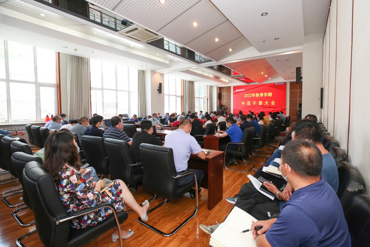 8月30日上午,學(xué)校在匠心樓一層第四會議室召開了秋季學(xué)期中層干部大會,會議由校黨委書記高喜軍主持,全體校領(lǐng)導(dǎo)以及中層干部參加會議。