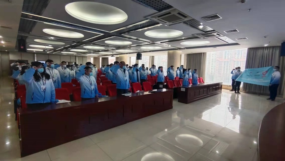 在簡短而莊重的出征儀式上,首先由石景山團區委書記賈曦同志為志愿服務隊授旗。隨后全體志愿者在建工學院團總支書記高歌老師的領誓下共同宣誓,鏗鏘的誓言響徹會場,激蕩在每個人的心間,表達了每一名志愿者的莊重承諾。