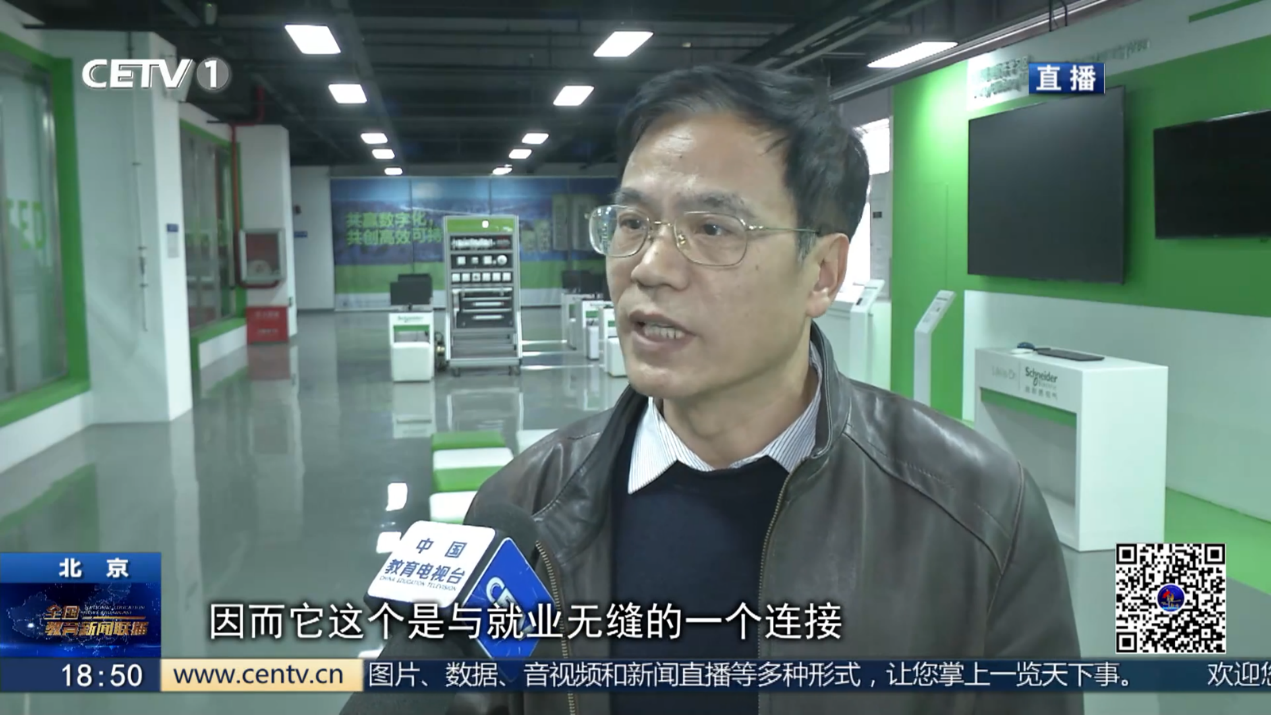 節目還介紹了我校施耐德電氣城市能效應用研究和人才培養中心校企合作模式的優勢。北京工業職業技術學院電氣教研室主任王先宏在接受采訪時表示,校企合作核心是為學生提供更多典型項目實訓機會,產教融合校企合作需要繼續向縱深發展,探索最優模式。