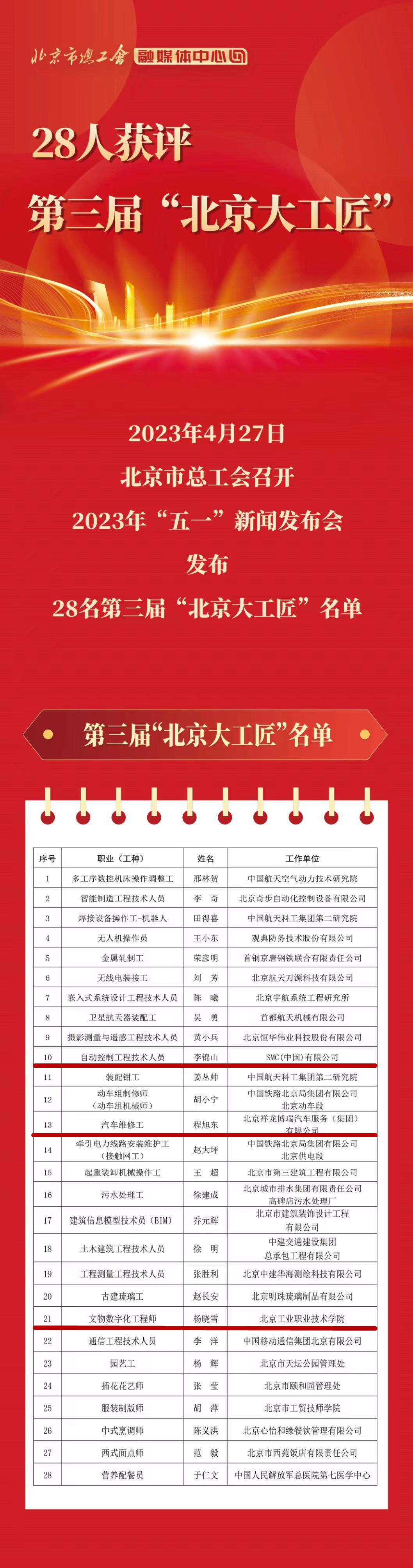 近日,北京市總工會發布28名第三屆“北京大工匠”名單,我校機電工程學院教師楊曉雪和兩名優秀畢業生——程旭東和李錦山獲此殊榮。5月4日,《北京晚報》、“北京學習平臺”從28位“北京大工匠”中挑選了三位年輕人,講述他們的青春之歌。現將文章中關于我校優秀畢業生程旭東的事跡進行轉載。希望全校師生學習優秀榜樣,掌握精湛技藝,傳承工匠精神,爭做新時期的“北京大工匠”。