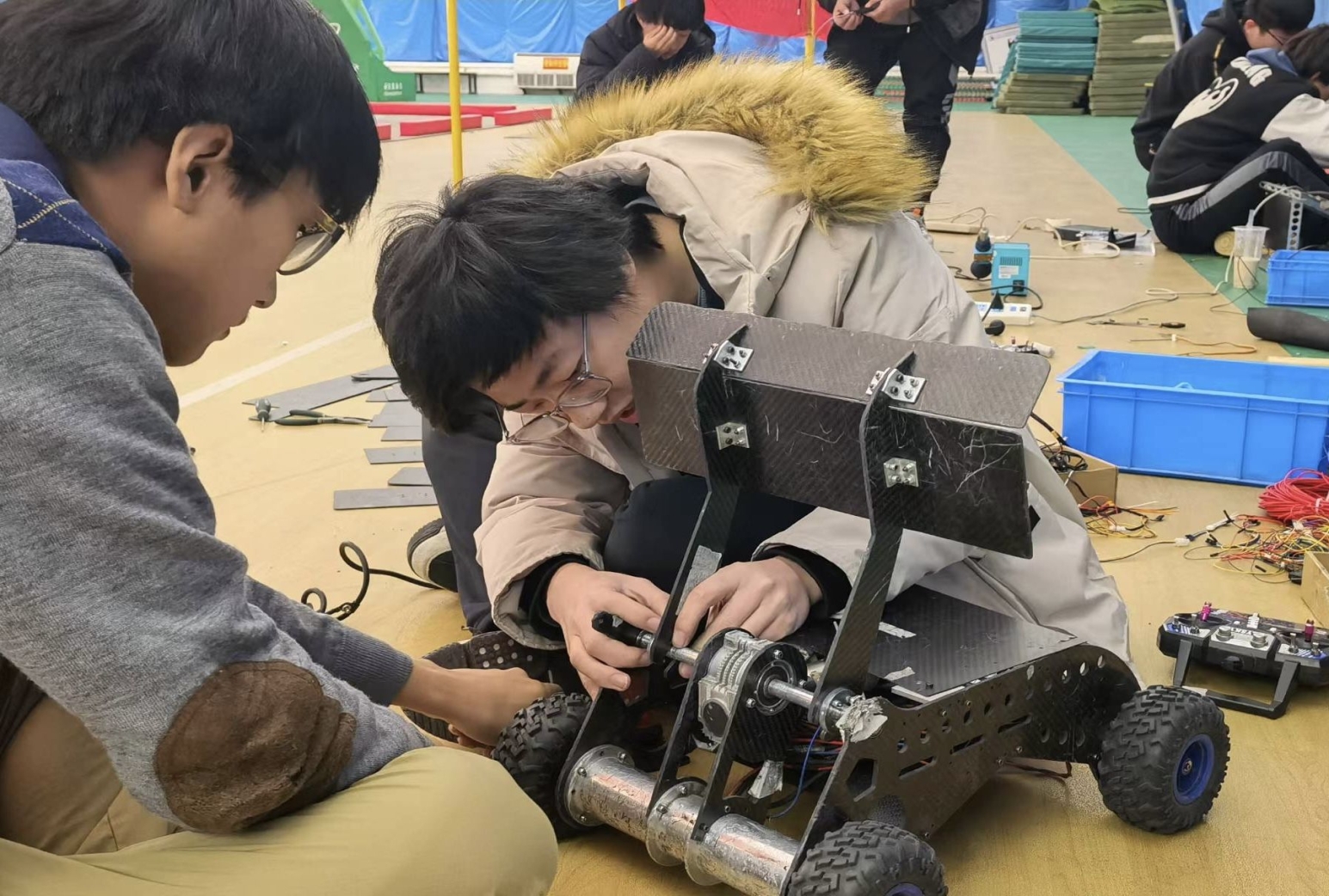 2021年12月,北京工業(yè)職業(yè)技術(shù)學(xué)院氣膜館,“飛檐走壁蜘蛛俠”團(tuán)隊(duì)在為校內(nèi)賽調(diào)試機(jī)器人。