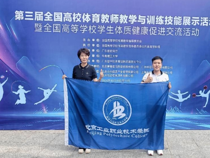 2024年10月11-12日,由全國高等學校體育教育指導委員會主辦的第三屆全國高校體育教師教學與訓練技能展示活動在華南理工大學成功舉辦。此次活動共有103所高校,214名老師參加,其中9位教師代表北京高校參賽,他們分別來自北大、清華、北京交通大學、北京工業大學、北京工業職業技術學院5所高校。同場參加比賽的選手還有奧運會、亞運會、全國冠軍等。展示比賽分為排球、羽毛球和健美操三類項目進行。我校體育部郝澤亮老師參加了健美操項目的展示比賽,經過激烈的授課視頻評比、體能比賽、專項比賽,最終榮獲二等獎。