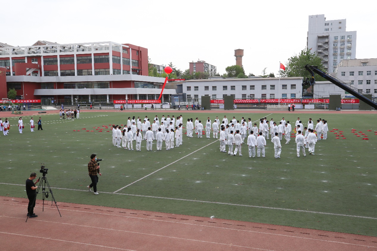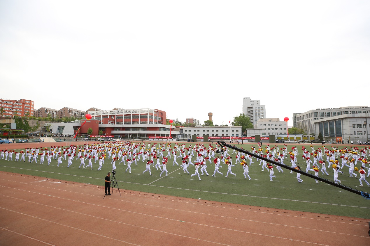 團體操表演中整齊劃一的廣播體操表演展現(xiàn)出青春活力,剛?cè)岵奈湫g(shù)表演展現(xiàn)出傳統(tǒng)文化的獨特意蘊,活力四射的街舞表演、健美操表演展現(xiàn)了當代大學生的青春自信。為了慶祝建黨100周年,今年的團體操表演還伴隨著《東方紅》的音樂旋律呈現(xiàn)了奧運五環(huán)、黨徽、黨旗等圖案,將運動會開幕式氛圍推向高潮。