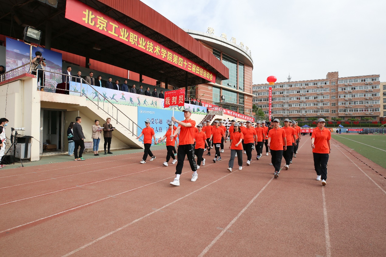 伴隨著鏗鏘有力的旋律,國旗方陣、裁判員方陣、教師方陣、學生方陣邁著整齊的步伐,依次昂首經(jīng)過主席臺接受檢閱。他們精神抖擻,意氣風發(fā),展現(xiàn)了北工院人團結(jié)拼搏、奮發(fā)向上的精神風貌。