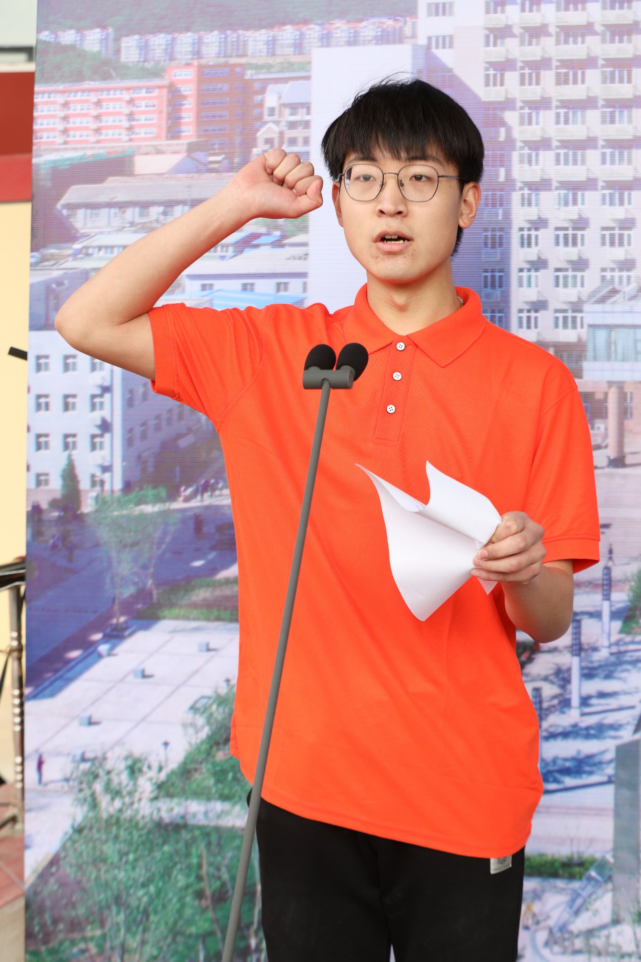 莊嚴的升旗儀式過后,校長安江英致開幕詞。他指出,在經(jīng)歷了極不平凡的2020年后,我國開啟了全面建設社會主義現(xiàn)代化國家新征程,迎來了中國共產(chǎn)黨建黨100周年,在這個重要而具歷史意義的年份里,經(jīng)過全校師生員工的精心組織與籌備,學校迎來了第四十三屆田徑運動會,向為籌備運動會付出辛勤勞動的教職員工和同學們表示衷心的感謝。