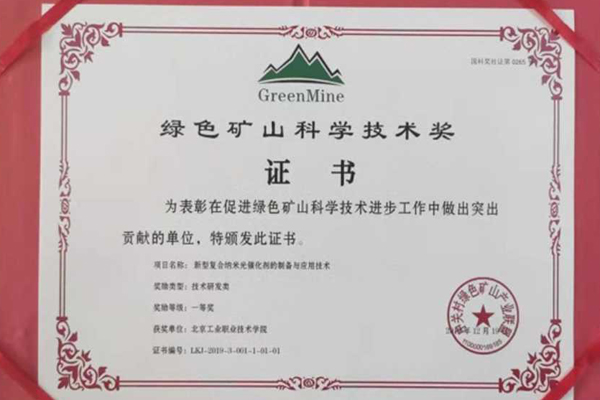 我校王佼教授領(lǐng)銜的科技成果“新型復(fù)合納米光催化劑的制備與應(yīng)用技術(shù)”獲2019年度 “綠色礦山科學(xué)技術(shù)獎(jiǎng)” (國(guó)科獎(jiǎng)社證第0265號(hào))一等獎(jiǎng)。 學(xué)校作為第一完成單位的獲獎(jiǎng)證書(shū) ? ? ?綠色礦山科學(xué)技術(shù)獎(jiǎng)是科技部國(guó)家科學(xué)技術(shù)獎(jiǎng)勵(lì)辦公室2015年批準(zhǔn)設(shè)立政府支持獎(jiǎng)項(xiàng)。2019年度綠色礦山科學(xué)技術(shù)獎(jiǎng)(第三屆)分:技術(shù)研發(fā)類(lèi)109項(xiàng),一等獎(jiǎng)14項(xiàng),二等獎(jiǎng)49項(xiàng),三等獎(jiǎng)46項(xiàng);...